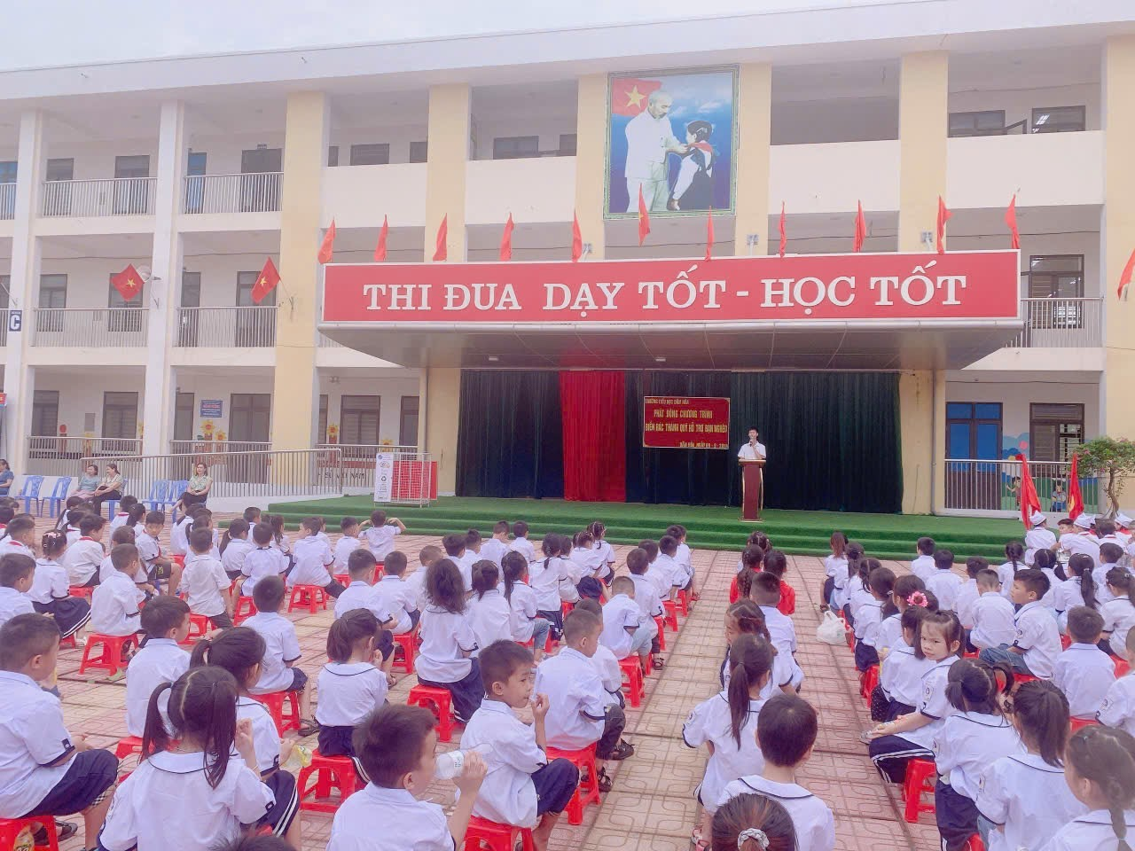 Đại diện lãnh đạo PGD&ĐT đồng chí: Nguyễn Văn Thạch lên phát động chương trình “Biến rác thành quỹ hỗ trợ bạn nghèo” năm học 2024 – 2025.