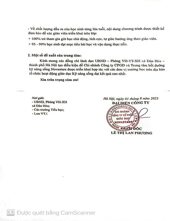 Bản cam kết chất lượng công ty Kỹ năng sống Novastars
