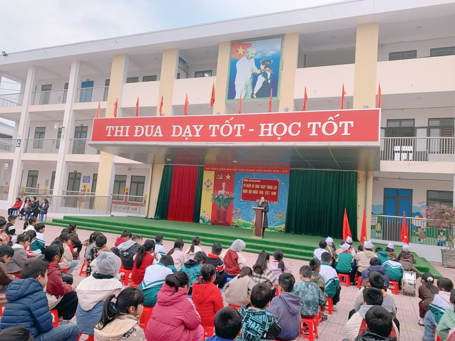 Cô giáo Tổng phụ trách: Đinh Thị Yến lên ôn lại ý nghĩa lịch sử ngày thành lập Quân đội nhân dân Việt Nam 22/12.
