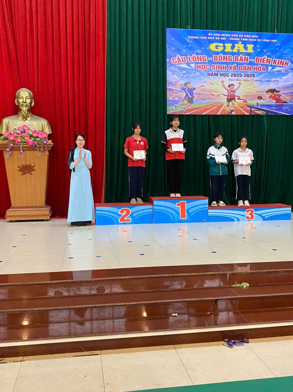 🌟 Đặc biệt, nhà trường vinh dự được Ủy ban nhân dân xã Dân Hòa trao tặng giấy khen cho các em học sinh có thành tích xuất sắc: